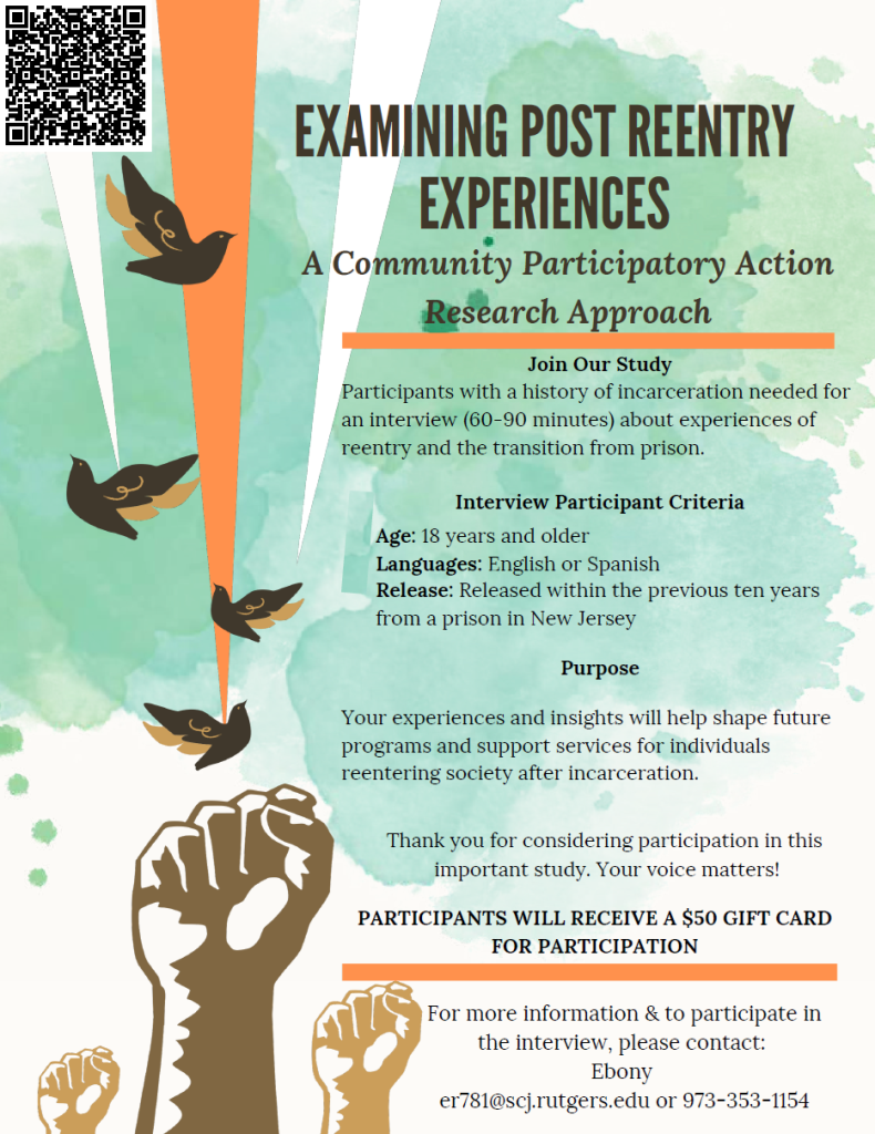 Rutgers University-Newark Study: Call For Formerly Incarcerated Participants